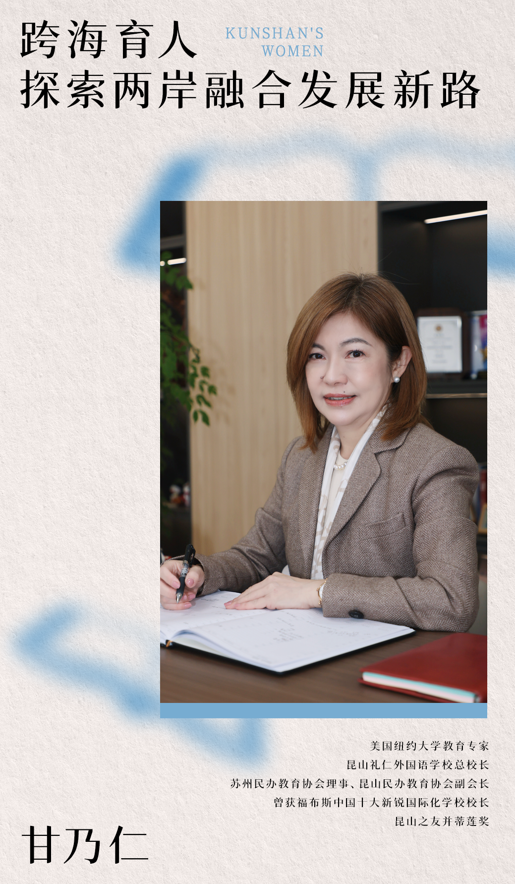 “30岁那年跨海而来,我以为只是人生的一段插曲。没想到,昆山成了我人生的黄金时期,我也在这里实现了我的教育理想。”深耕多年,甘乃仁说起在昆山的生活,眼中依然闪烁着光芒。