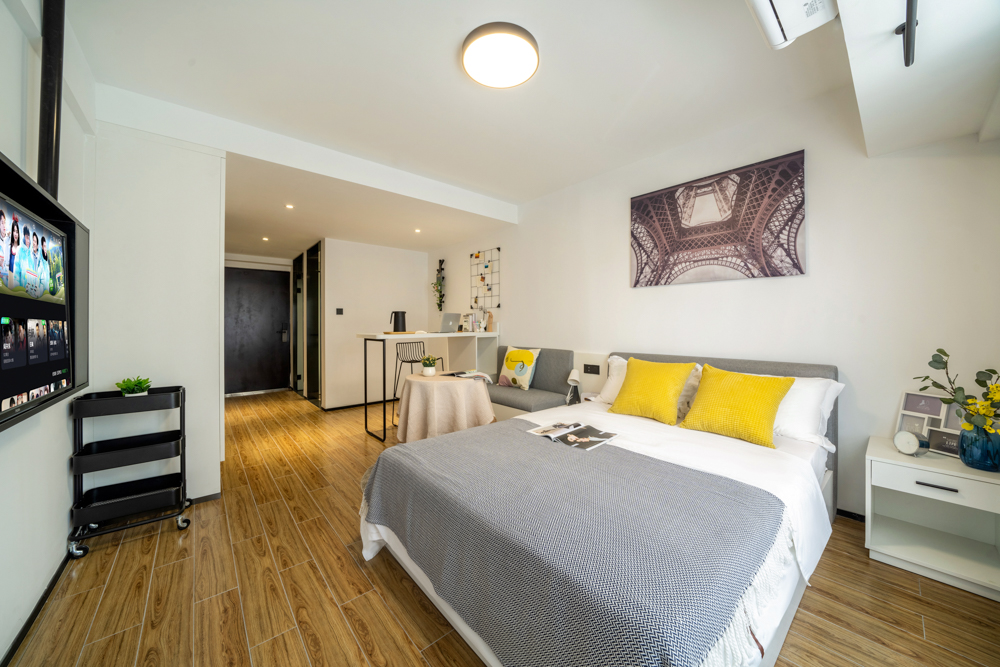 鑫欣服务公寓由鑫欣实业公司建设管理,坐落于高新区中环高架附近,邻近森林公园、万象汇商圈,满足人才休闲、购物、餐饮等多元生活需求。项目提供房源172套,涵盖45至70平方米多种户型,室内冰箱、书桌、床柜等家具家电齐全,满足不同人群的个性化居住需求。