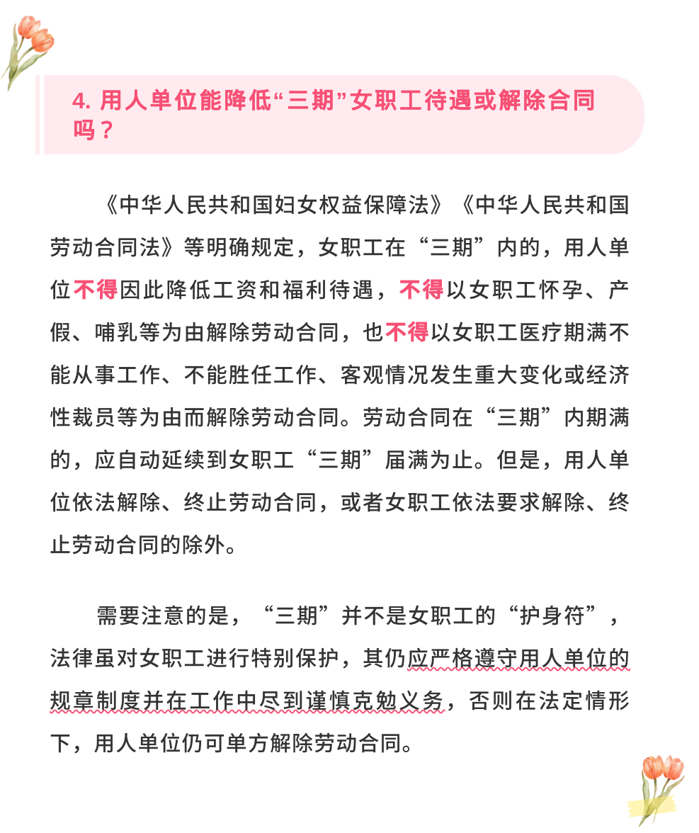 3. 用人单位能否调整“三期”女职工的工作岗位?