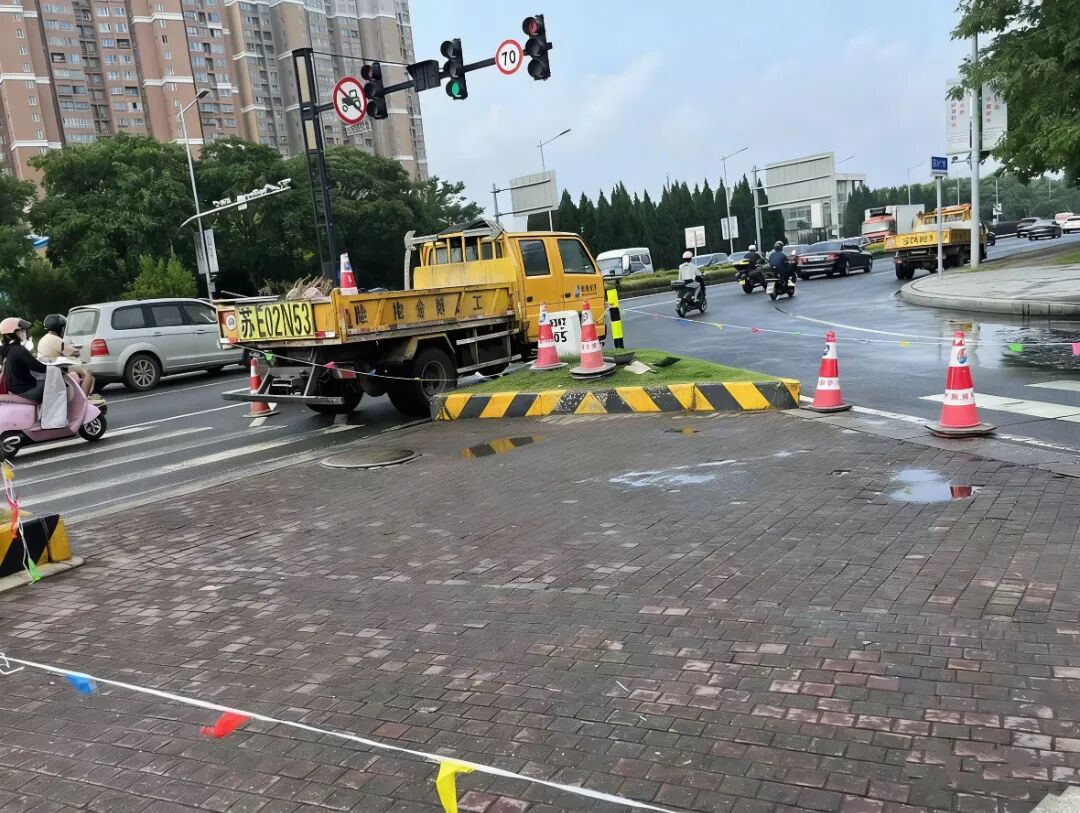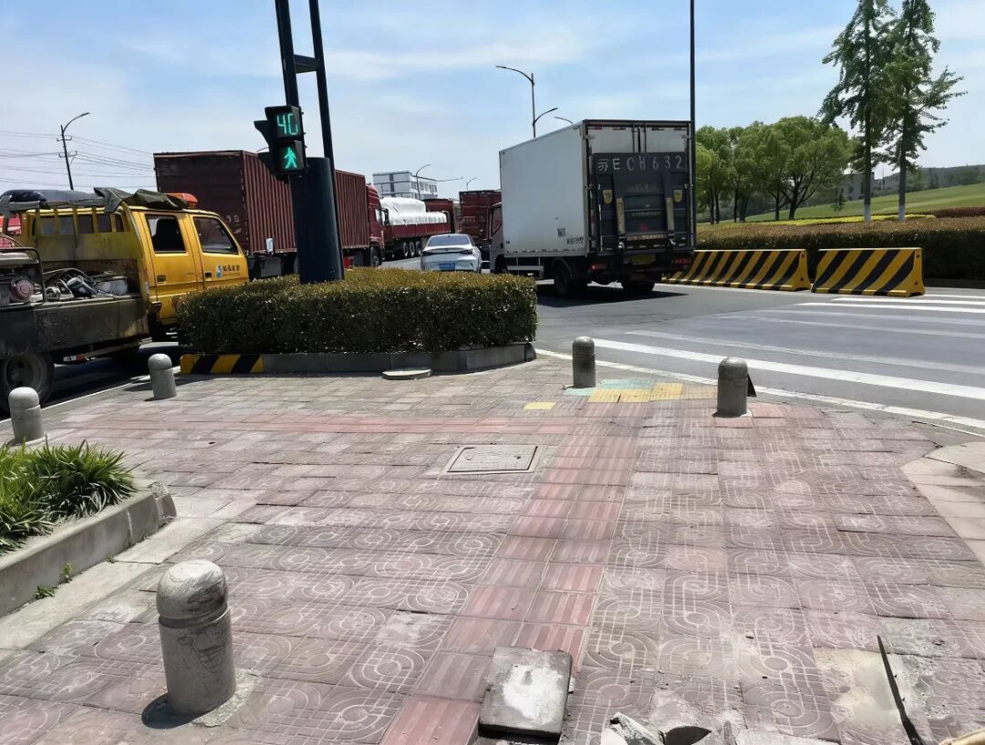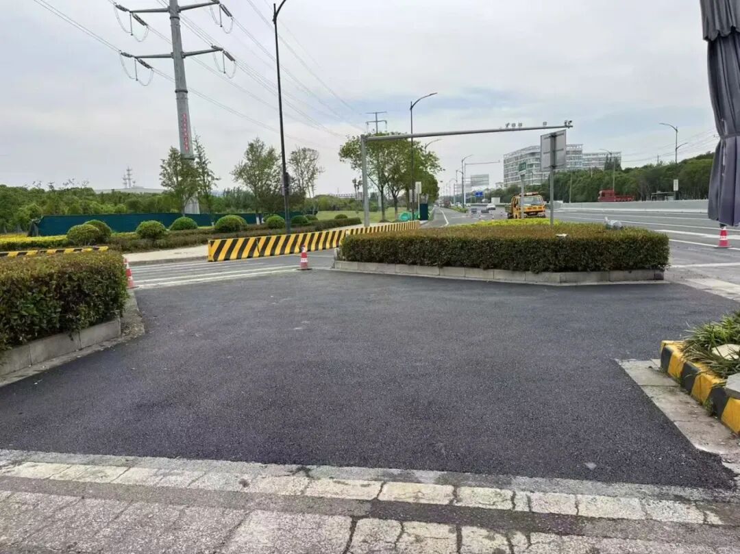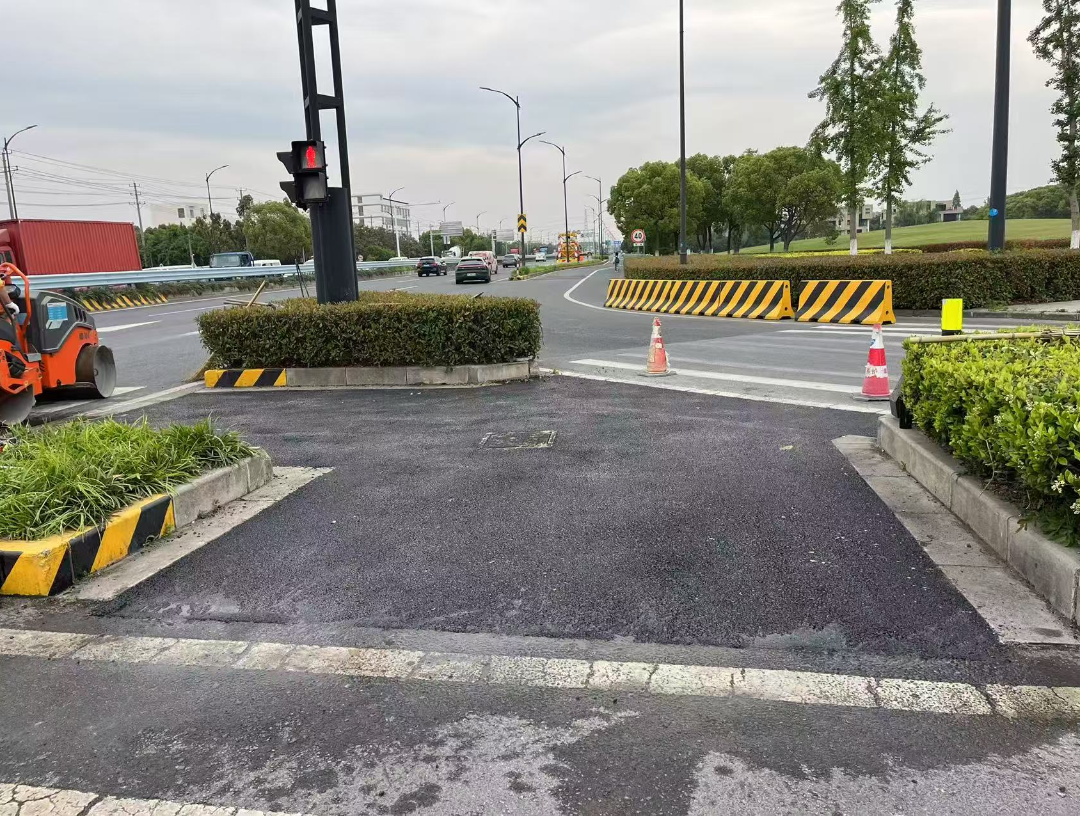 以往部分路口导流岛采用小方砖铺装,易破损、易积水,非机动车经过时还会颠簸不稳,通行体验不佳。