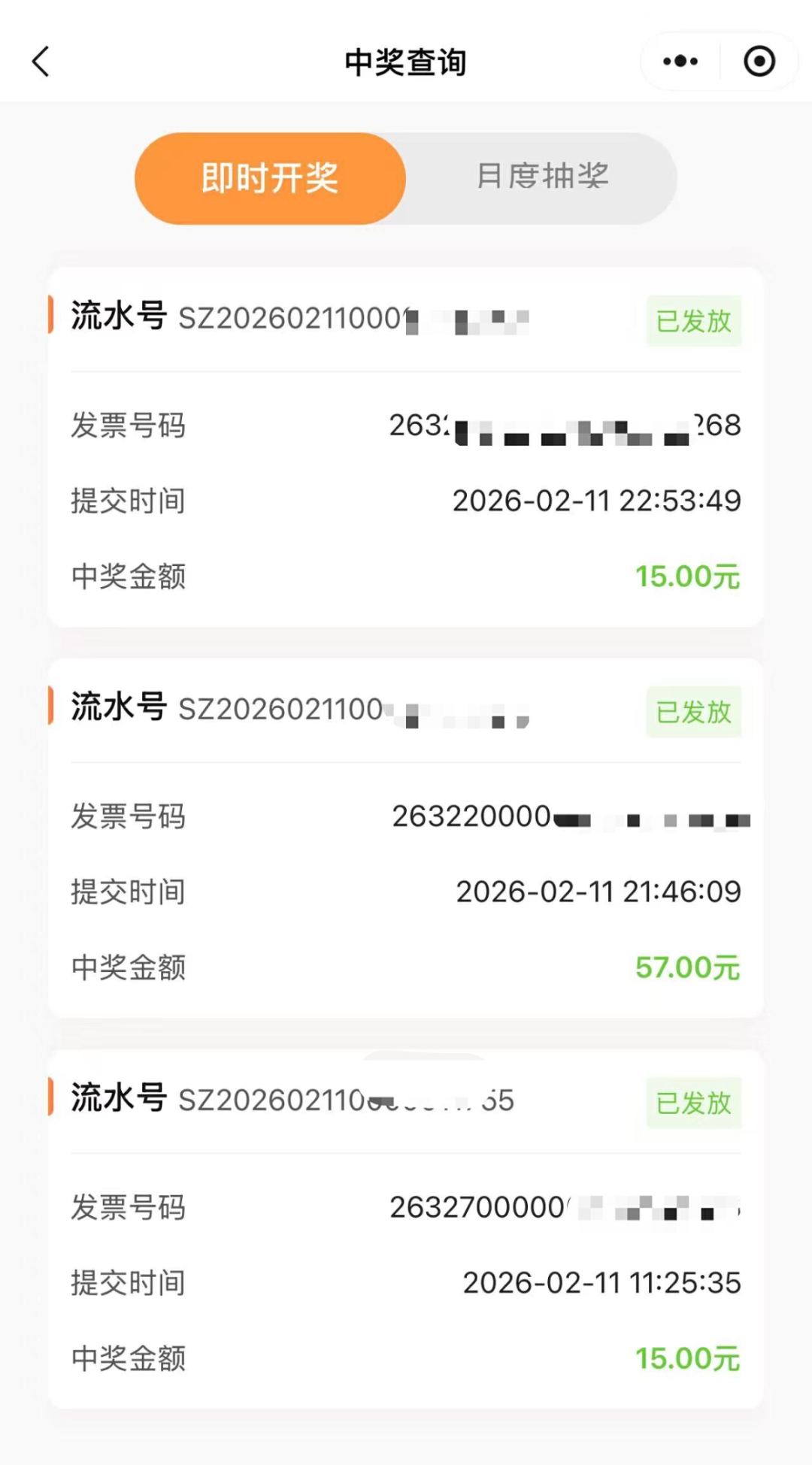“中奖查询”—“月度抽奖”模块