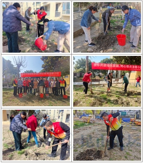 大家分工协作,热情高涨,挥锹铲土、扶苗填坑、提水浇灌,每个环节都认真细致。孩子们在家长的陪伴下,亲手种下一株株树苗,脸上洋溢着劳动的喜悦。经过一个多小时的共同努力,20余株树苗在春风中挺立,为小区增添了一片新绿。