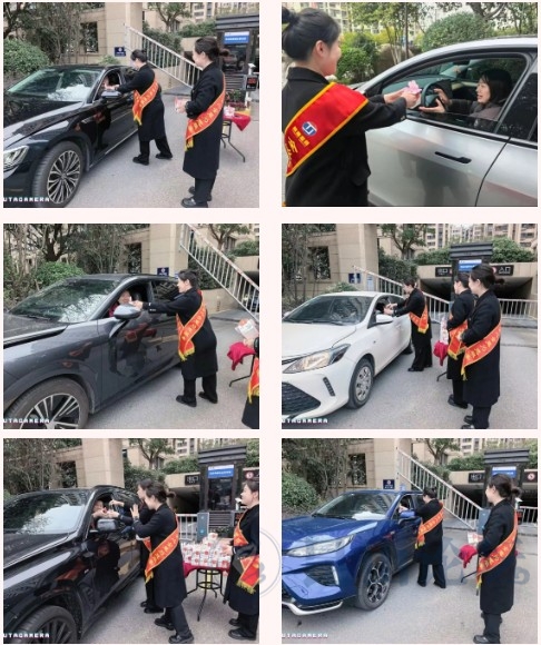 活动同时,北门车辆进出口物业客服团队身着整齐的工装,面带热情的笑容,早早便抵达现场做好准备。正值业主出行高峰,暖心献礼正式拉开帷幕。当业主驾驶车辆缓缓驶入或驶出北门时,客服人员便会主动上前,微笑着致以节日的问候,“女神节快乐!感谢您一直以来对物业工作的支持与理解”。伴随着亲切的话语,定制礼品与祝福贺卡被一一送到业主手中。带着孩子出行的张女士接过礼物后,还特意让孩子向客服人员道谢:“物业太贴心了,还准备了这么用心的礼物,住在睿怡庭特别有幸福感。”