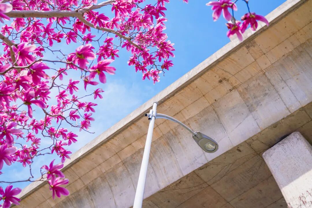 高架下的红色玉兰