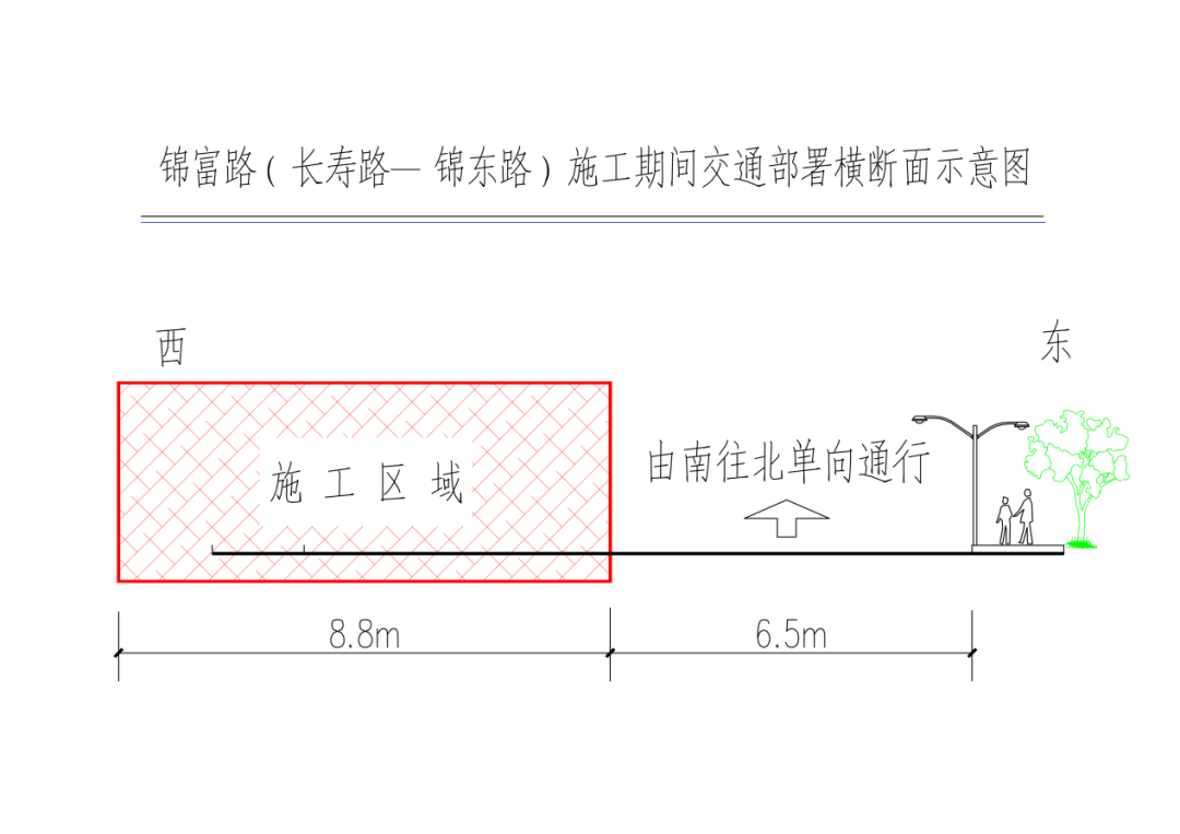 计划于2026年3月14日至2026年8月30日锦富路西半幅实行封闭施工。届时锦富路东半幅实行由南往北单向通行。