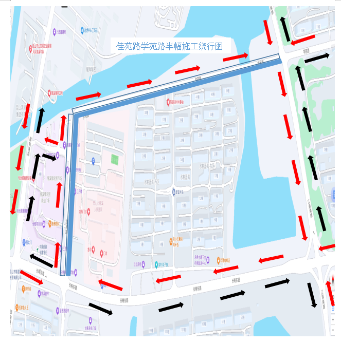 计划于2026年3月15日至2026年7月15日学苑路南半幅实行封闭施工。届时学苑路北半幅实行由西往东单向通行。
