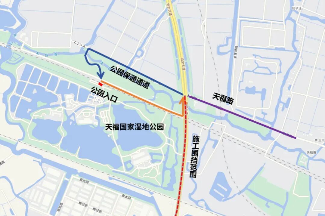 本次封闭路段北起沿沪大道与天福路交叉口南至沿沪大道与逢星路交叉口施工期间,将全力保障市民基本出行需求,在封闭道路周边路口增设引导标识,并安排安保人员指引广大市民进行绕行。
