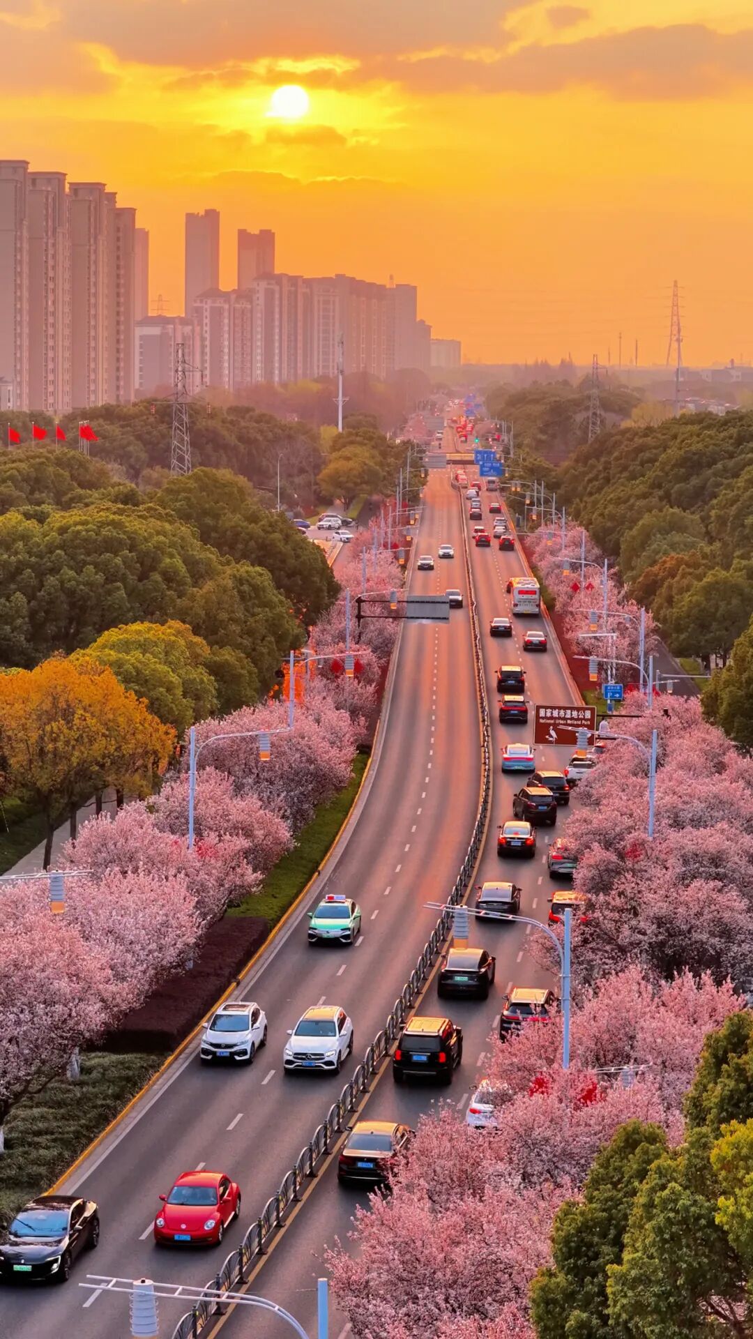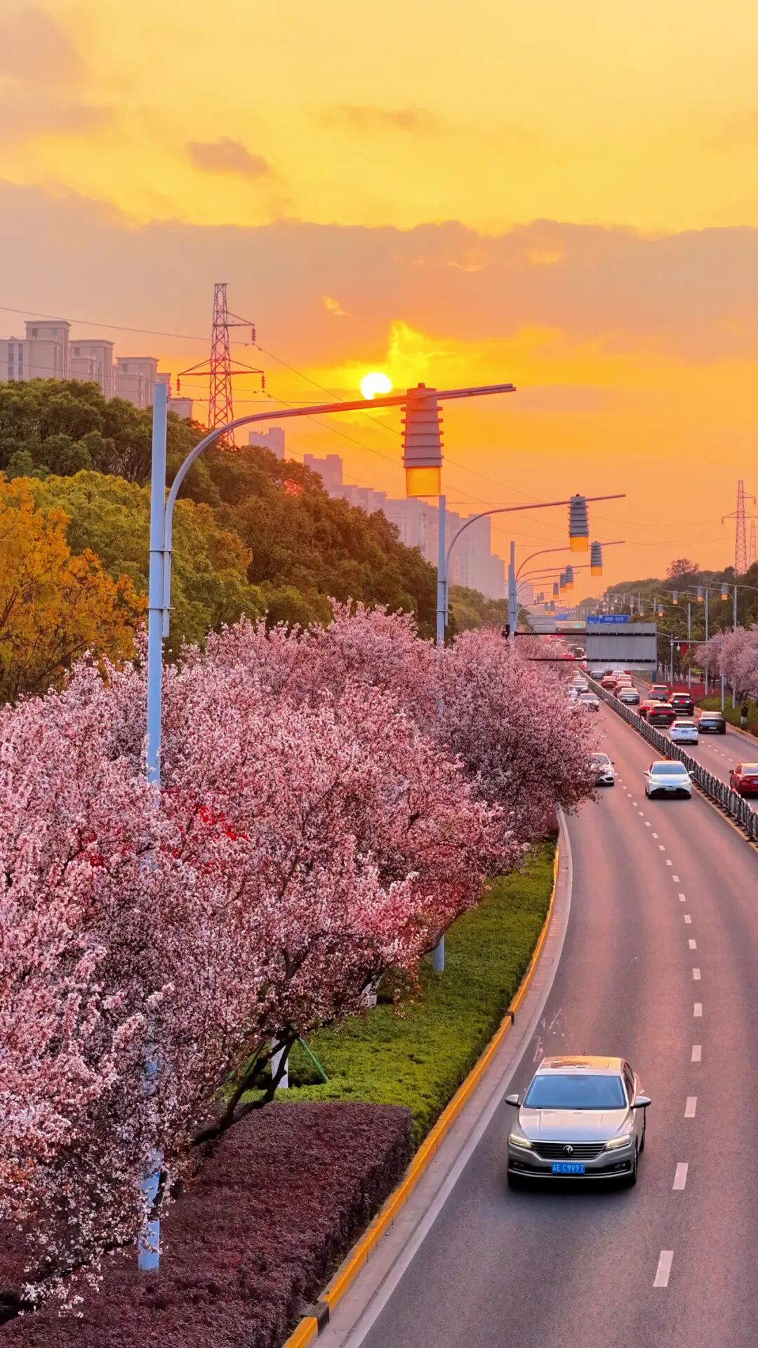 开车经过,繁花夹道相迎