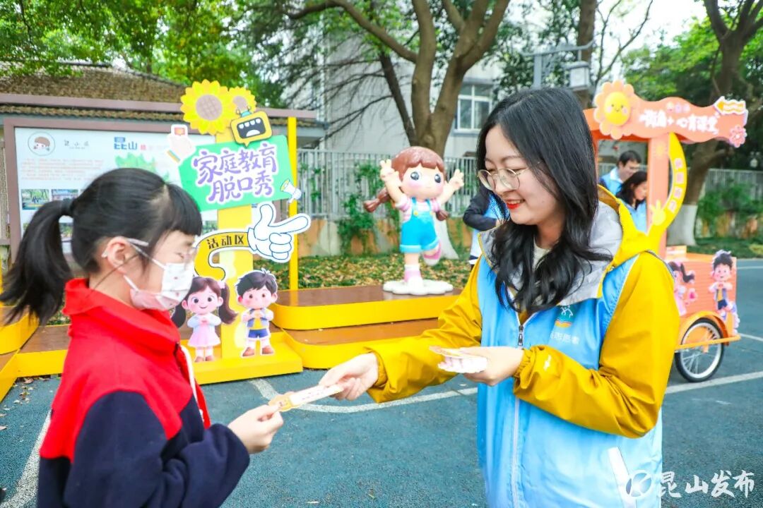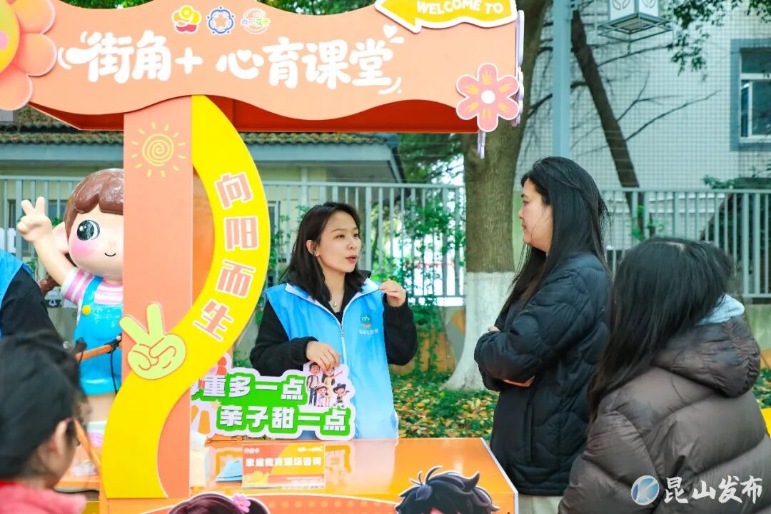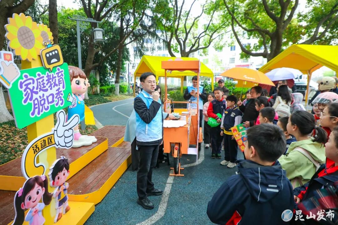这是昆山市委宣传部(文明办)联合市教育局深化校家社协同育人工作,创新推出的“街角+”心育课堂,充分利用放学前后“黄金十五分钟”,将学校周边街角变为轻松有趣的学习“微课堂”、育儿“充电站”,通过脱口秀、故事会等形式,让家长在会心一笑中收获育儿智慧,实现从“被动等待”到“主动学习”的转变。