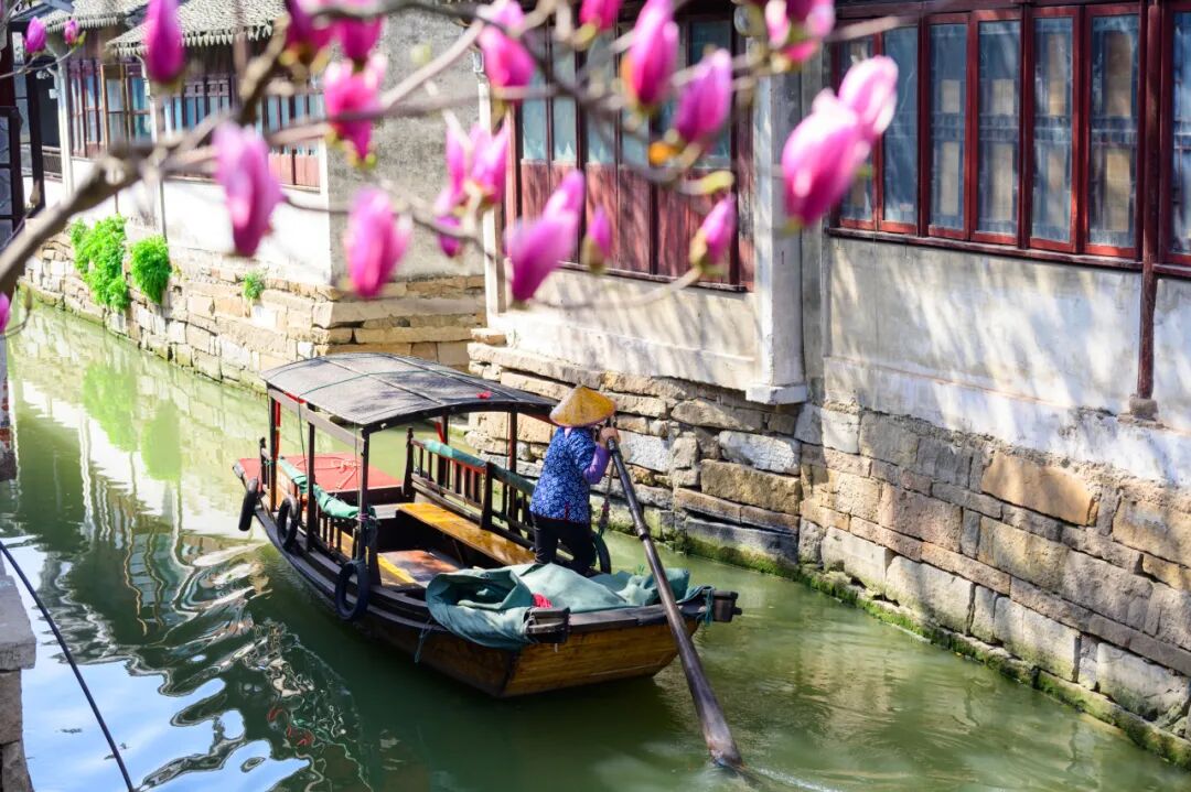 白墙黛瓦缀繁花,古镇水乡将春色写成温柔的诗篇。