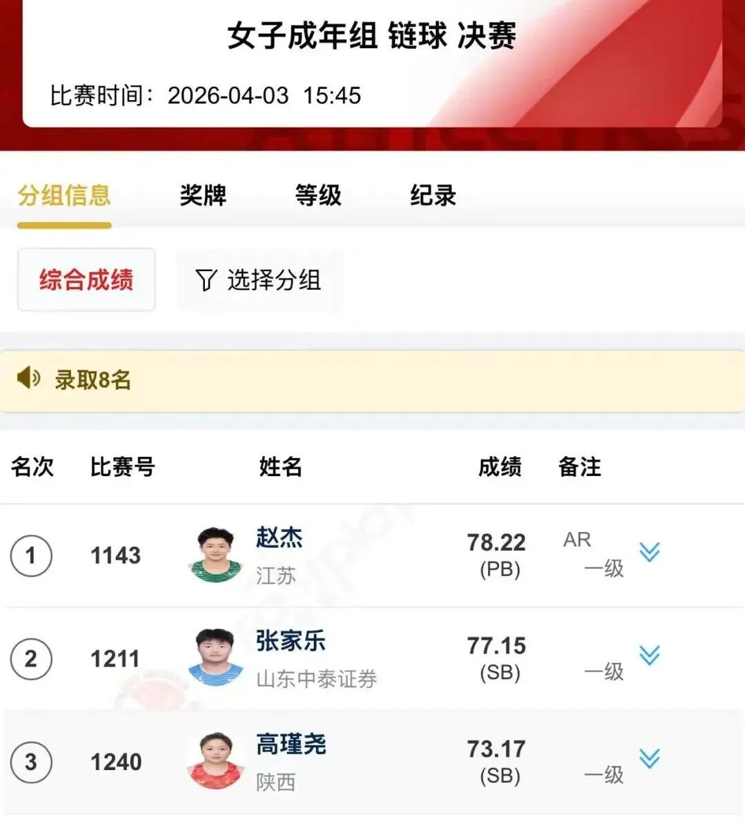 赵杰以77.61米的优异成绩