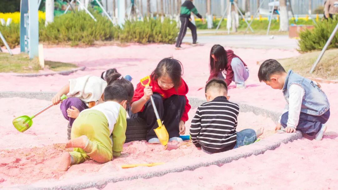 跑啊、闹啊、挖沙子、骑小车、摆pose拍照……