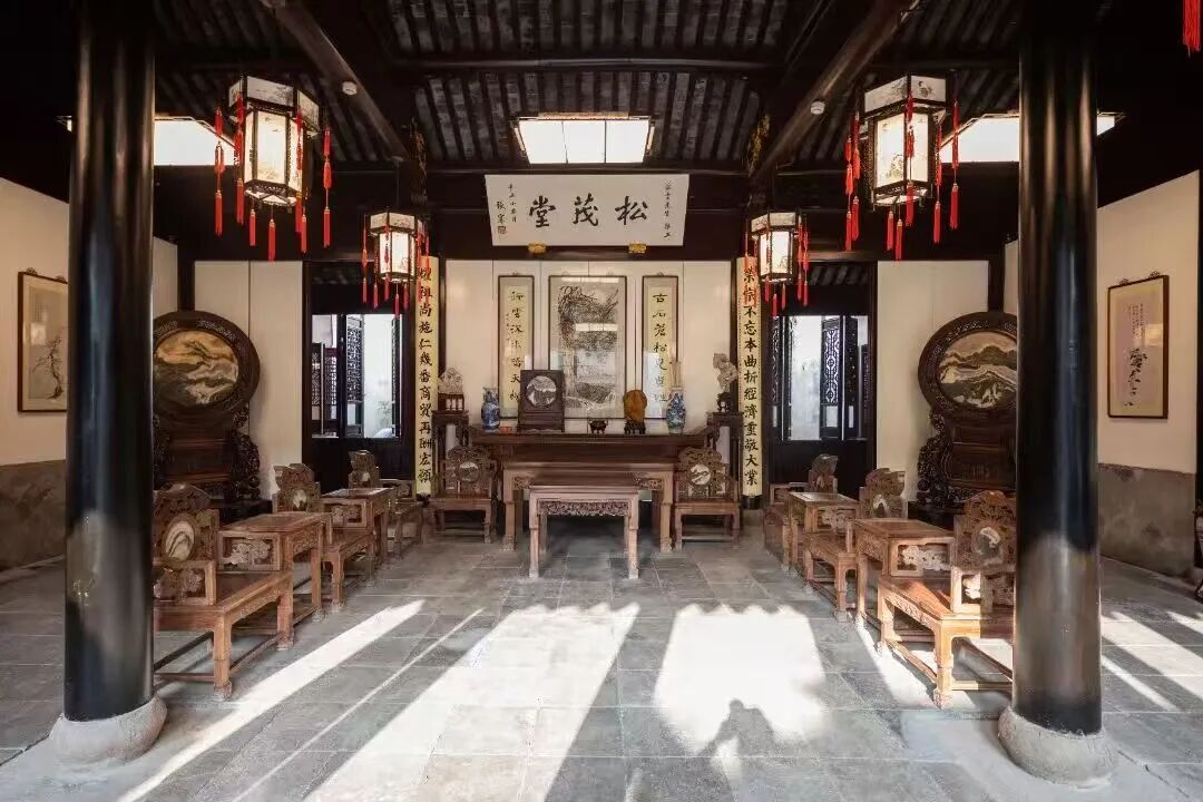 明代建筑,距今约580年,宅院最具独特的是“轿从门前进,船自家中过”——正厅旁有私港河道,可停靠小船。如在雨天走进张厅,不仅能感受庭院深深,还能感受天井听雨、临窗望船的大宅氛围。