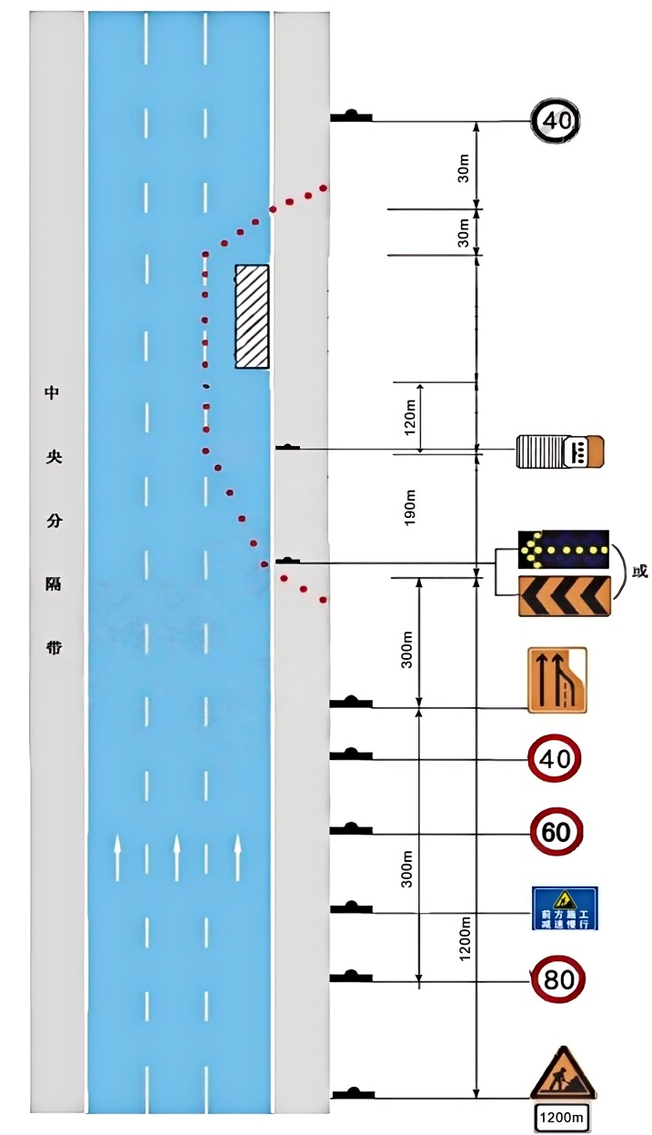养护作业范围内,临时占用一个车道,同向其他车道正常通行。请过往车辆减速慢行,给您带来不便,敬请谅解!