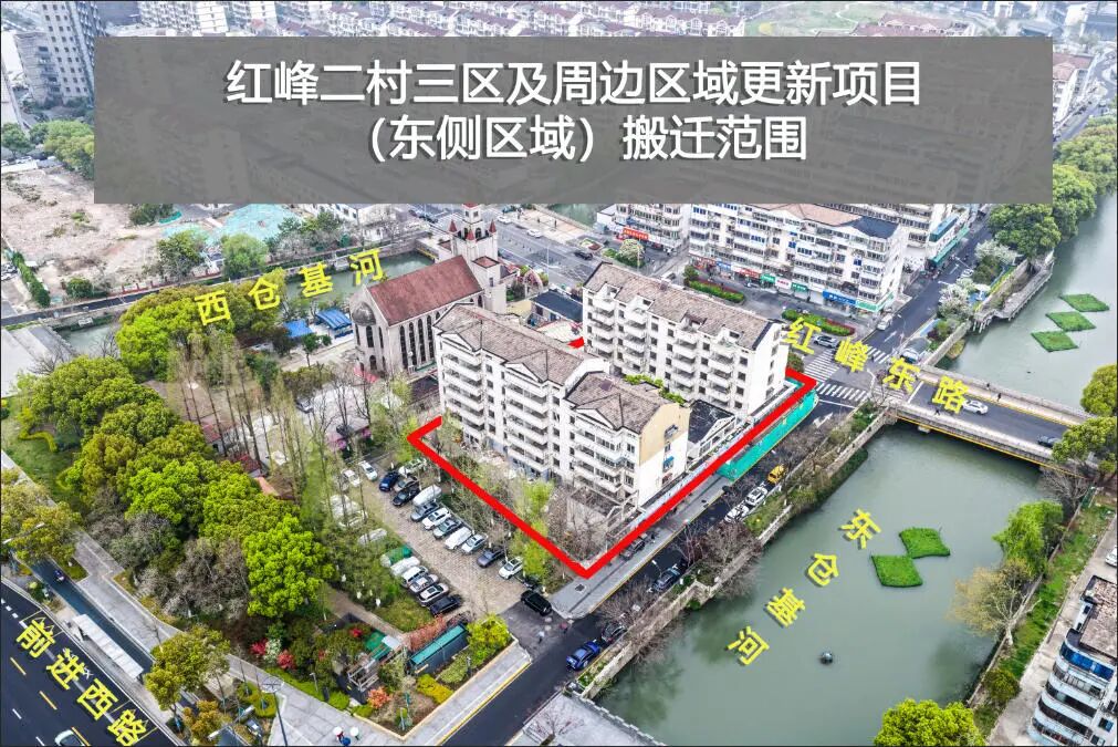 此次拆除的旧房,属于红峰二村三区及周边区域更新项目(侧区域)范围。该项共计搬迁60户,其中住宅44户,商业16户,建筑面积约4800平方米,涉及房屋2栋及商业。本次旧房拆除,将为白马泾站TOD(站城一体化)建设腾挪出核心发展空间。