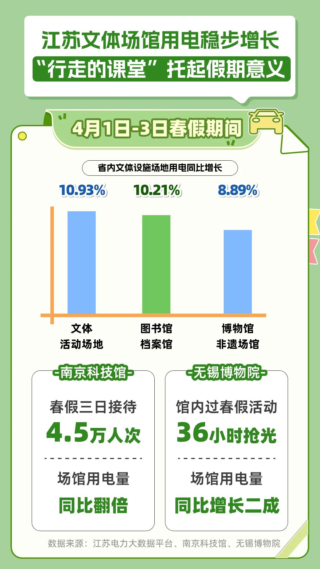 “从电力数据可以看出,首个春假不仅‘放得了’更‘托得起’。游乐园用电猛增的同时,图书馆、博物馆、非遗场馆的用电也在稳步增长——娱乐与教育两头都没落下,让这个假期既有人气,又有意义。”国网江苏电力营销服务中心数字运营部主任邹云峰表示。