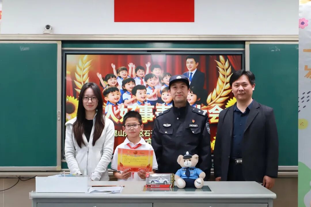 为弘扬这份善意,警方迅速开启“全城搜索”模式,寻找这名睿智又暖心的“小孩哥”。最终确认,他正是昆山开发区石予小学四年级的亢程在校园成长礼这天,民警来到学校,为亢程颁发奖状并赠送礼品。“你真棒,感谢你为城市平安作出贡献!”民警对亢程乐于助人的行为予以高度赞扬。“以后遇到这样的事情,我还是会主动帮忙的。”亢程毫不犹豫地说道。