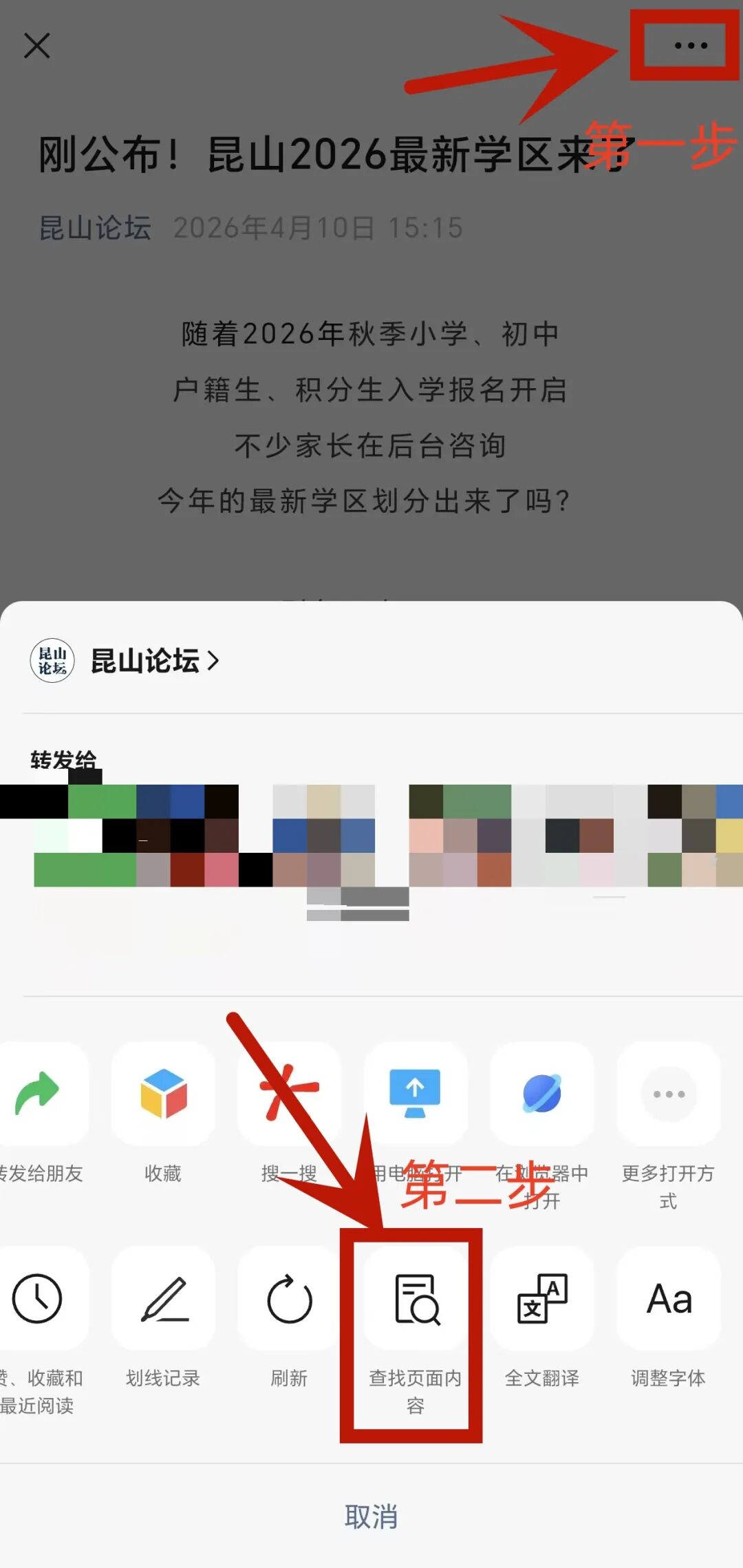 家长可以点击右上角“…”再戳放大镜“搜索页面内容”输入小区名称,查找更迅速