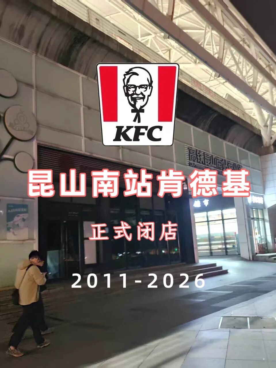 谁的青春又下线了?昆山南站肯德基正式闭店,结束了2011-2026年整整15年的陪伴!
