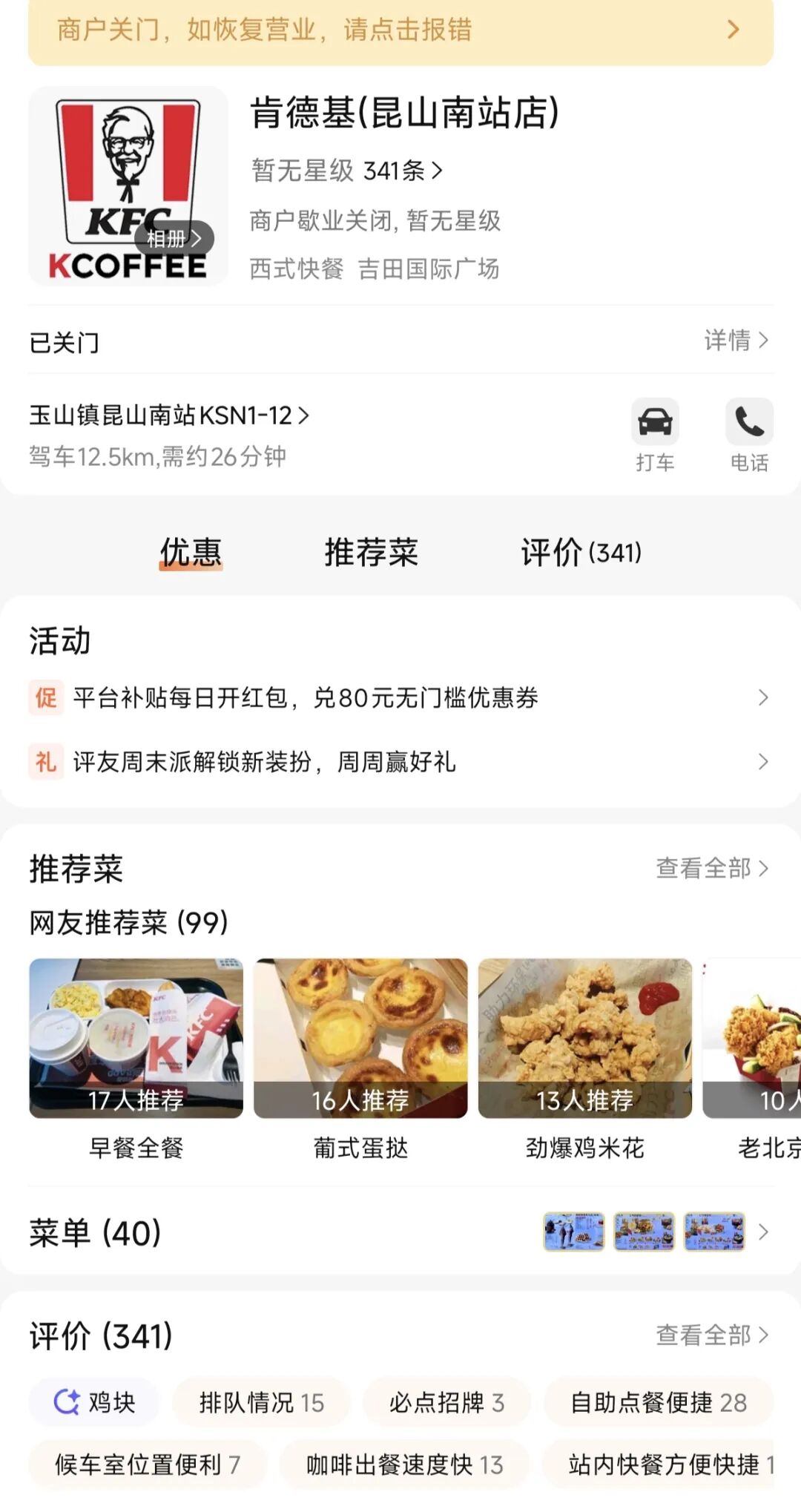 从营业执照信息可以看到,门店成立于2011年8月18日,如今平台已标注「歇业关闭」,实体门店也已卷帘门拉下,正式告别昆山南站。
