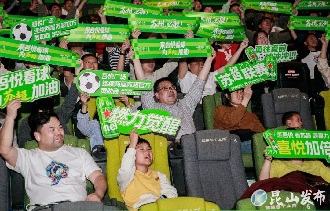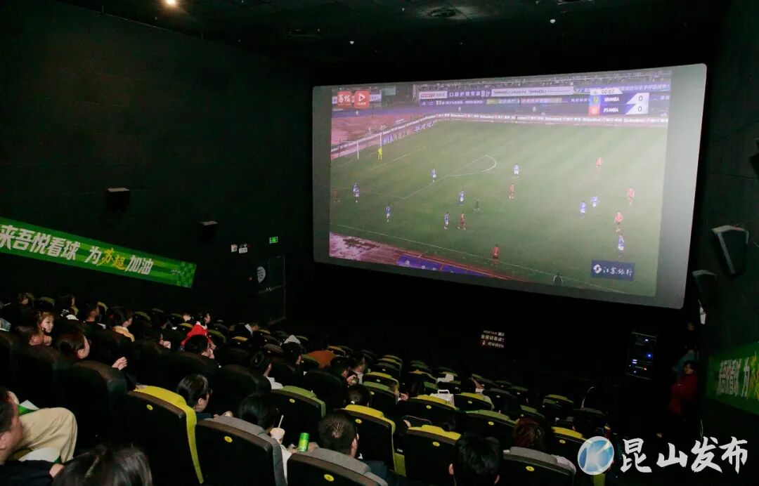 昆山吾悦广场的星轶影院内,大银幕上同步转播苏州队对阵扬州队的比赛,让球迷朋友们现场过足瘾!吾悦广场还准备了线上抽奖环节,奖品包括“苏超”现场门票以及啤酒等。据了解,此后每逢苏州队的比赛场次,昆山吾悦广场都会组织“第二现场”转播活动。现场球迷激动地说:“我平时就喜欢踢球和看球,今天在电影院里观看球赛,感觉氛围很好,和在现场没有什么区别!”