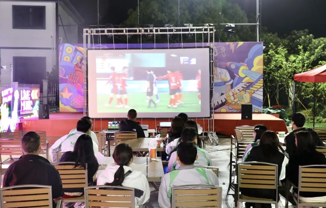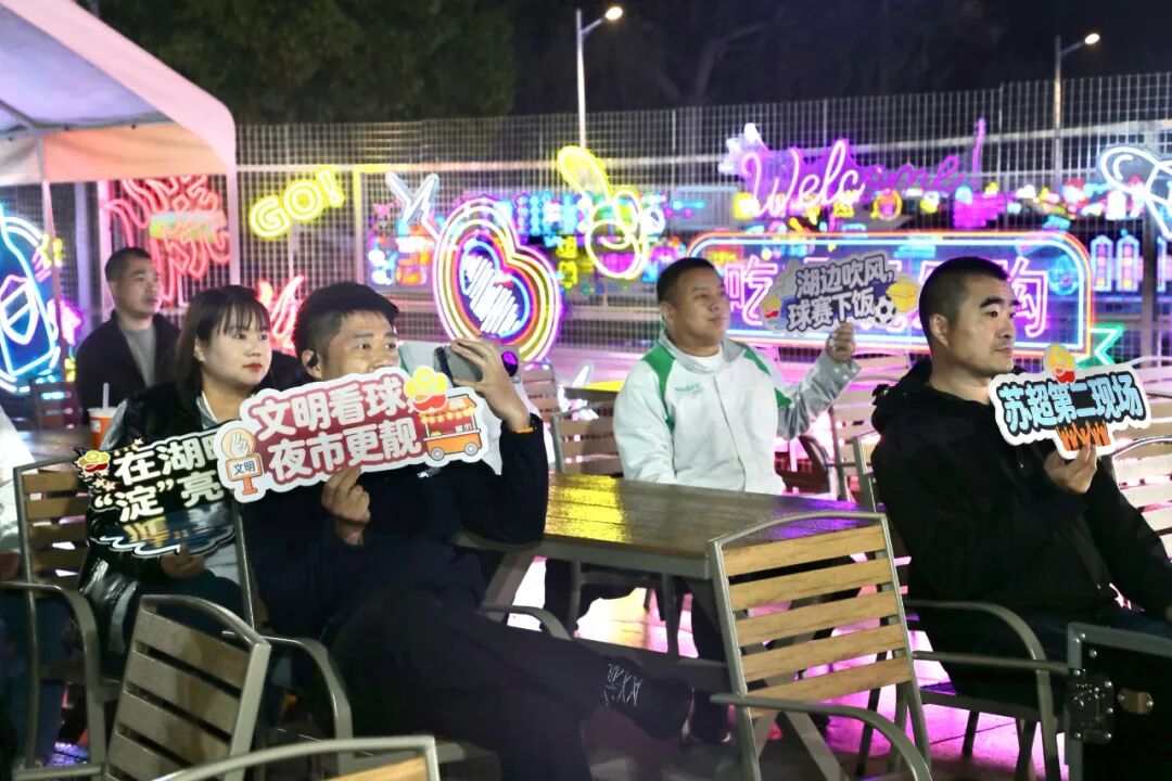大渔湾风情商业街的“第二现场”同样热火朝天。身着红色助威服的球迷围坐大屏幕前,为远征的家乡球队隔空呐喊。街区商户适时推出观赛特色套餐,烧烤、啤酒与欢呼声交织,让足球的烟火气与湖畔的欧式风情碰撞出别样体验。以赛事聚人气、以文旅留脚步,大渔湾正探索“体育引流、商业承接”的夜经济新场景。