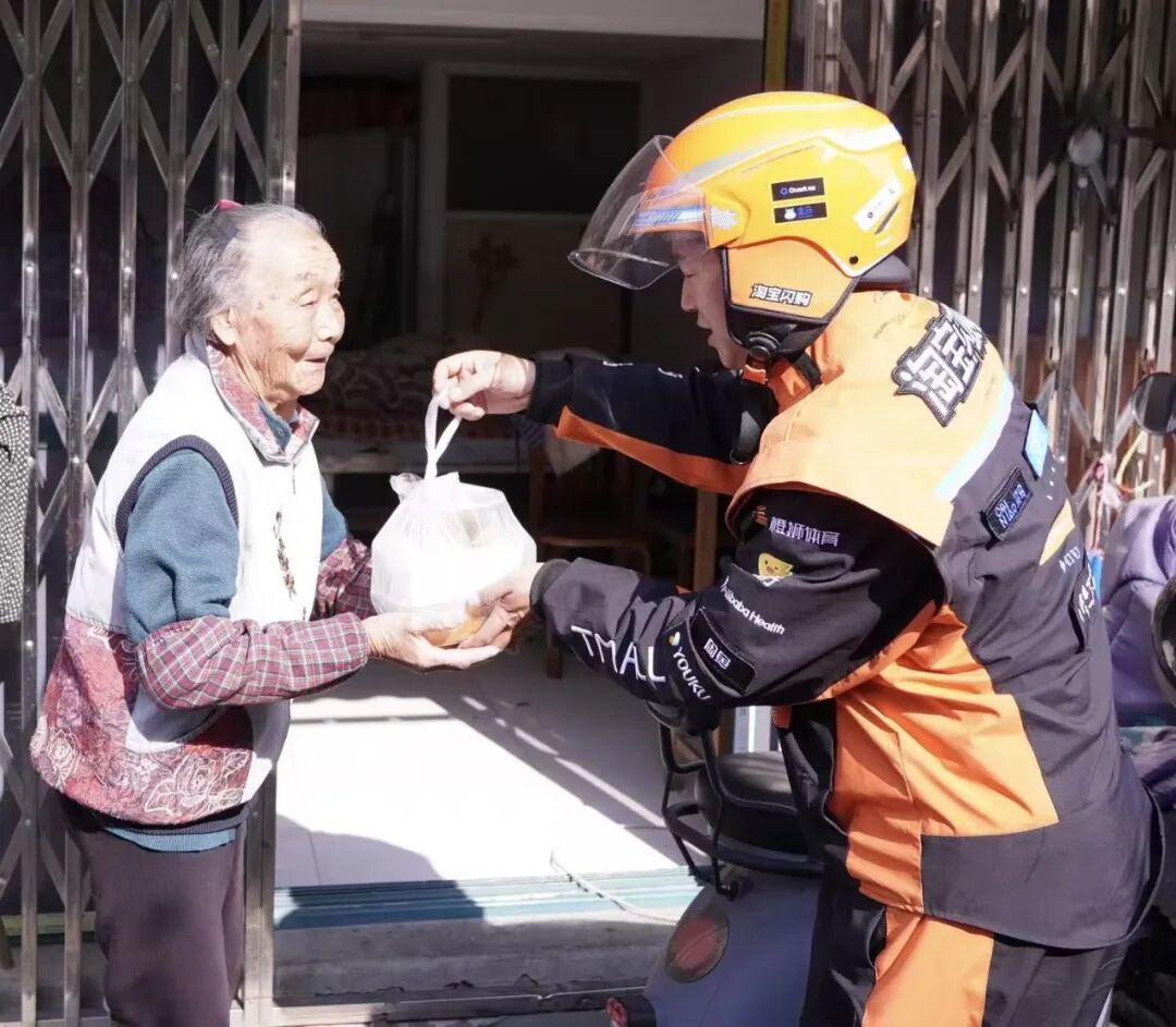 转机出现在2025年11月,美丰社区党总支与淘宝闪购、苏州昱雄科技合作,在苏州率先试点“城市骑士”助老送餐项目,由社区党支部牵头专门辟出一个外卖服务点,既是骑手的临时休憩站,也是需求对接的“中枢”。熊维波是其中的骑手之一,他出生于1998年,这个来自安徽的小伙子是第一批报名的骑手,家中爷爷奶奶也八十多了。“每次敲开门,看见那些跟自己爷爷奶奶一样年纪的人,就觉得特别亲。顺手帮一把,心里踏实。”像熊维波这样的“城市骑士”,站点里如今有30多位。半年来,他们穿梭在街巷楼栋间,累计敲响了老人的家门超1300次。