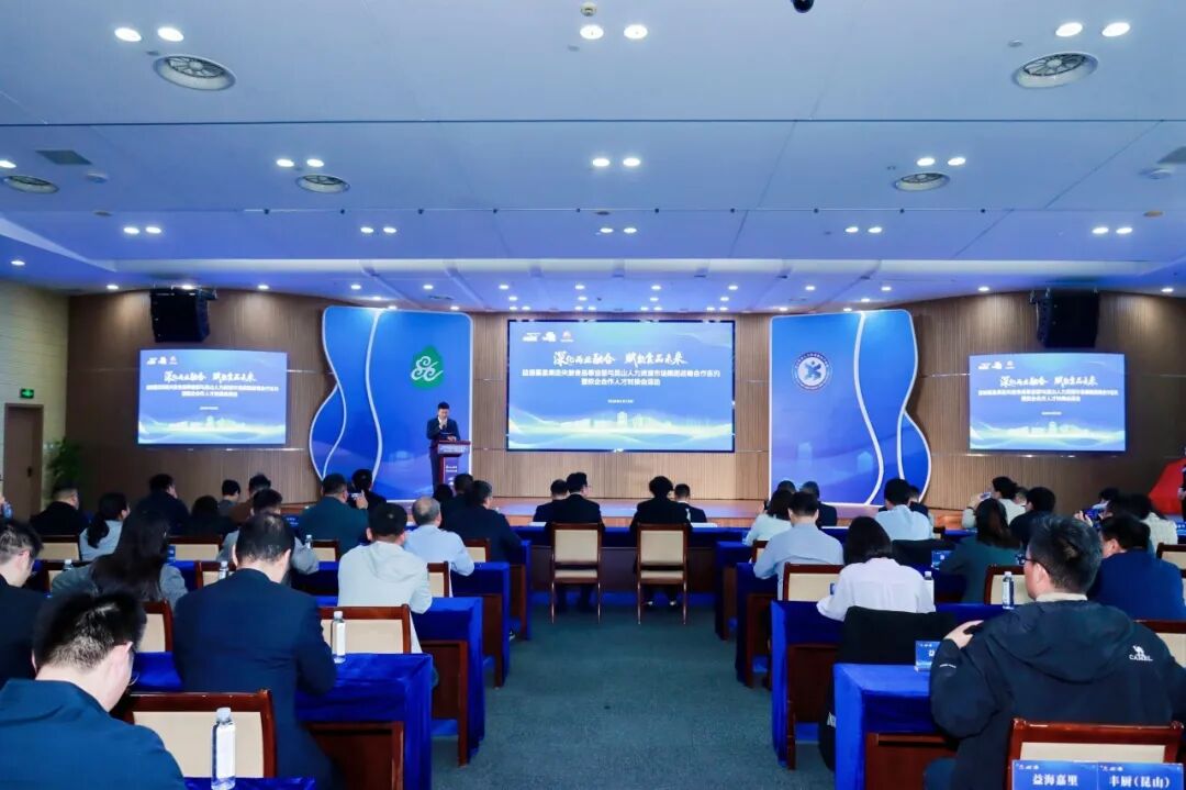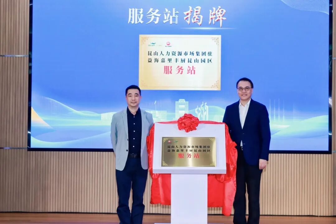 张建新与昆山人力资源市场党委副书记、管委会副主任、市人社局党组成员许继华共同为昆山人力资源市场集团驻益海嘉里昆山丰厨园区服务站揭牌。服务站将提供招聘对接、技能培训、人才测评、政策咨询、用工保障、园区运营等一站式服务,推动人才服务直达产业一线、贴近企业前沿。