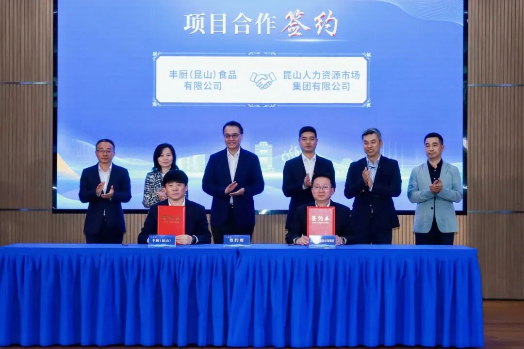 丰厨(昆山)食品有限公司与昆山人力资源市场集团有限公司战略合作成功签约,张建新、高勇等领导共同见证。双方将在人才引进、技能培养、就业服务、产业协同等方面开展长期深度合作。