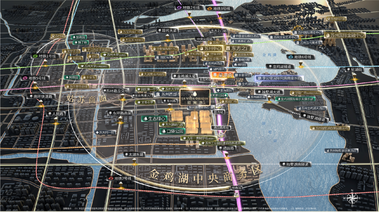 区域内,东方之门、苏州中心、环球188等地标性商业综合体云集,构筑了能满足高端购物、餐饮、娱乐需求的一站式生活圈。交通方面,双横双纵的主干道环绕,地铁2号线、3号线以及在建的7号线在此交汇,形成了立体化的交通网络,无论是自驾出行还是公共交通,皆可快速通达全城。