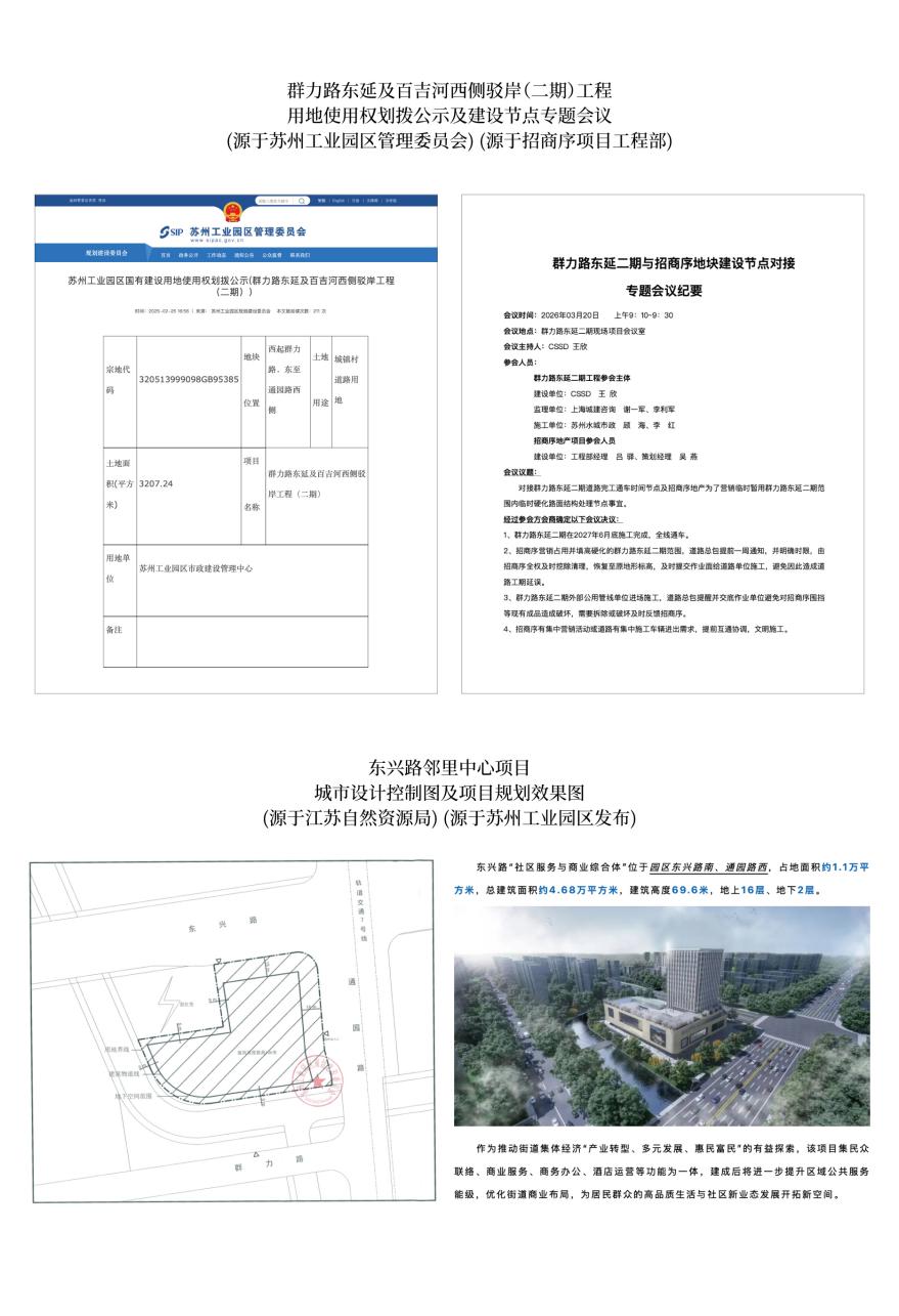 招商序北侧的群力路东延预计2027年年中通车,将有效缩短与邻里中心、地铁7号线的通行距离。东侧百吉河西岸驳岸工程,河道改造治理中,生态基底与城市界面实现双向融合。东兴路邻里中心2026年即将竣工,集民众联络、商业服务、商务办公、酒店运营等功能为一体。