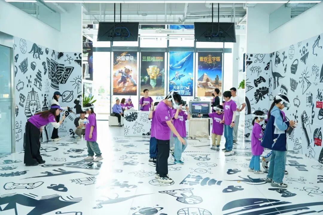戴上VR眼镜的瞬间,参与者仿佛瞬间穿越千年文明、漫游星际太空。XR大空间沉浸式体验让孩子们化身小小探险家,在历史与未来之间自由穿梭。“穿越大唐”“火星使命”等项目,让科技不再是书本上的抽象概念,而是触手可及的真实体验。身临其境的震撼感受,令大小朋友流连忘返,纷纷感叹:“原来科技可以这么有趣!”