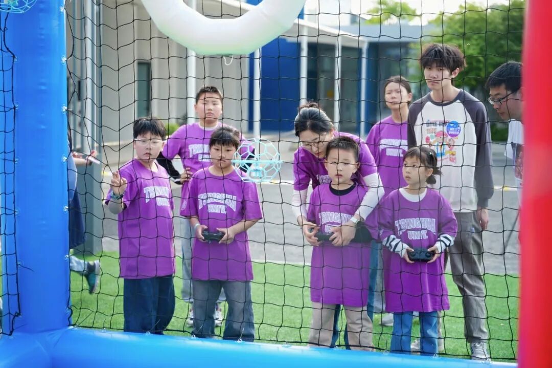 最激动人心的环节当属无人机足球竞技。从手柄感知到飞行控制,专业教练一步步带领孩子们掌握无人机操控技巧。在无人机足球初探环节,小朋友们认真学习的神情格外专注。随后的对抗赛将气氛推向高潮。围网内,无人机穿梭如飞,精准射门、团队协作,加油声、欢呼声此起彼伏。这正是低空经济的魅力——科技与运动的完美融合。孩子们在竞技中感受速度与激情,也在心中埋下了飞行的梦想。