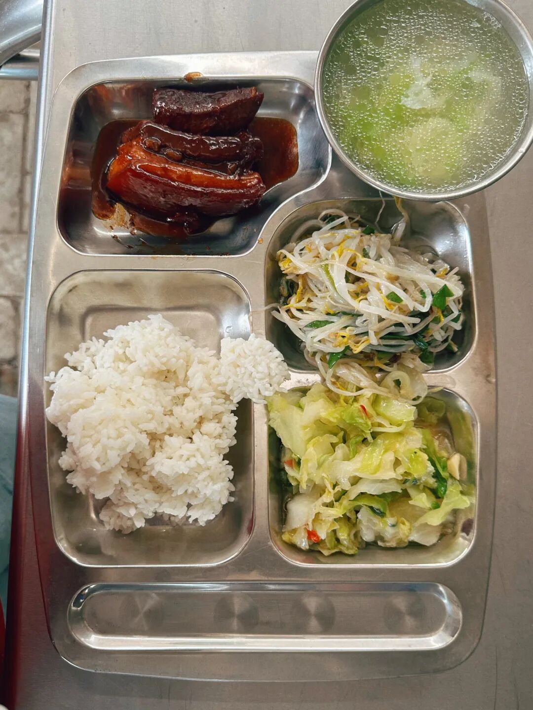 我也没想到,进去一逛就两个多小时。饿了吧,这里居然有食堂。15一份的"工作餐“。想着是地里的食材得多健康啊,就来了一份。于是我一个游客,端着盘子坐在一群员工中间吃饭......看看这餐标如何?