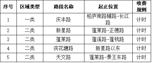 1.庆丰路(柏庐南路辅路—长江路),共计泊位56个