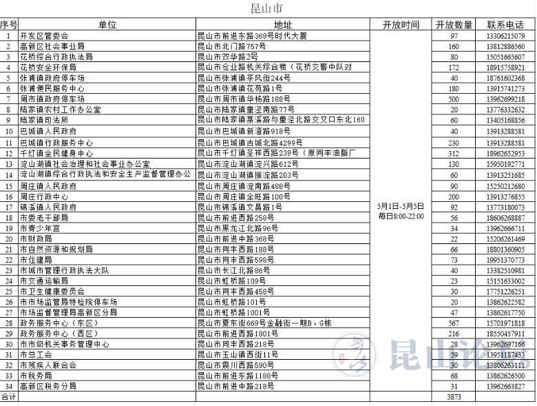 昆山免费停车场位置如下,记得收藏: