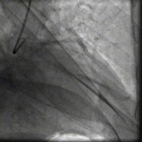 第一阶段,团队先为张老先生进行冠脉造影及介入治疗。结果显示,患者左前降支存在慢性完全闭塞病变,并伴有严重扭曲和钙化,常规处理难度较大。