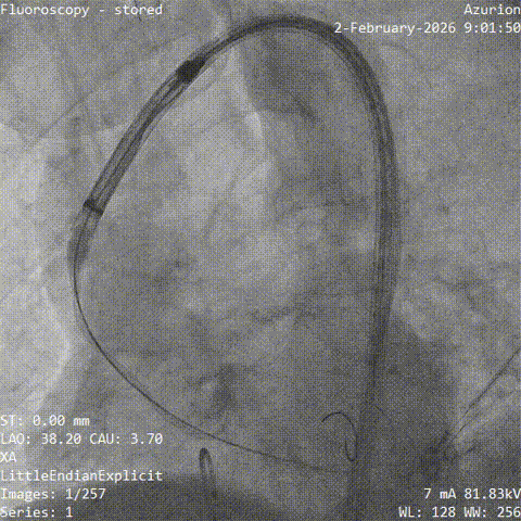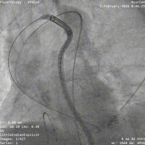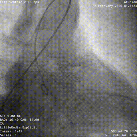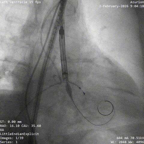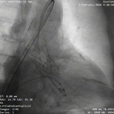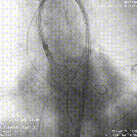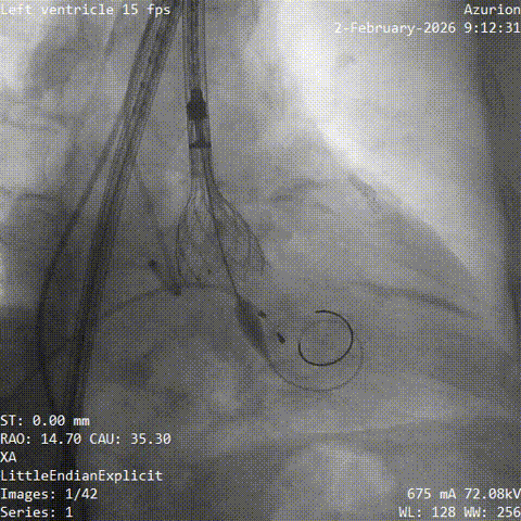 进一步评估显示,患者瓣膜狭窄程度重,瓣叶钙化明显,左心室腔径偏小,手术中对器械通过、瓣膜释放以及循环稳定性的要求都更高。团队结合术前影像和整体身体状况,制定了周密的介入治疗方案,并做好相关风险预案。