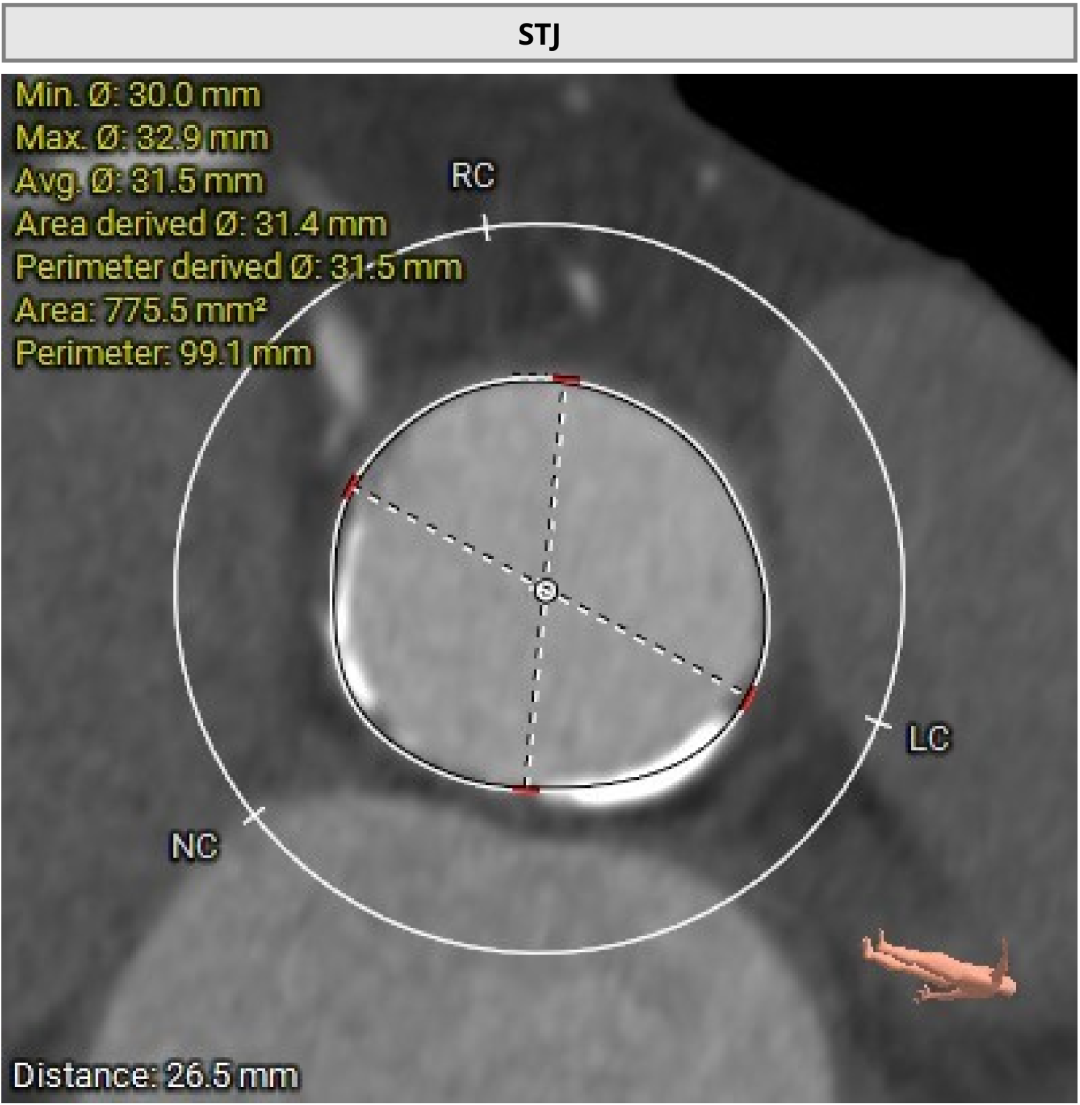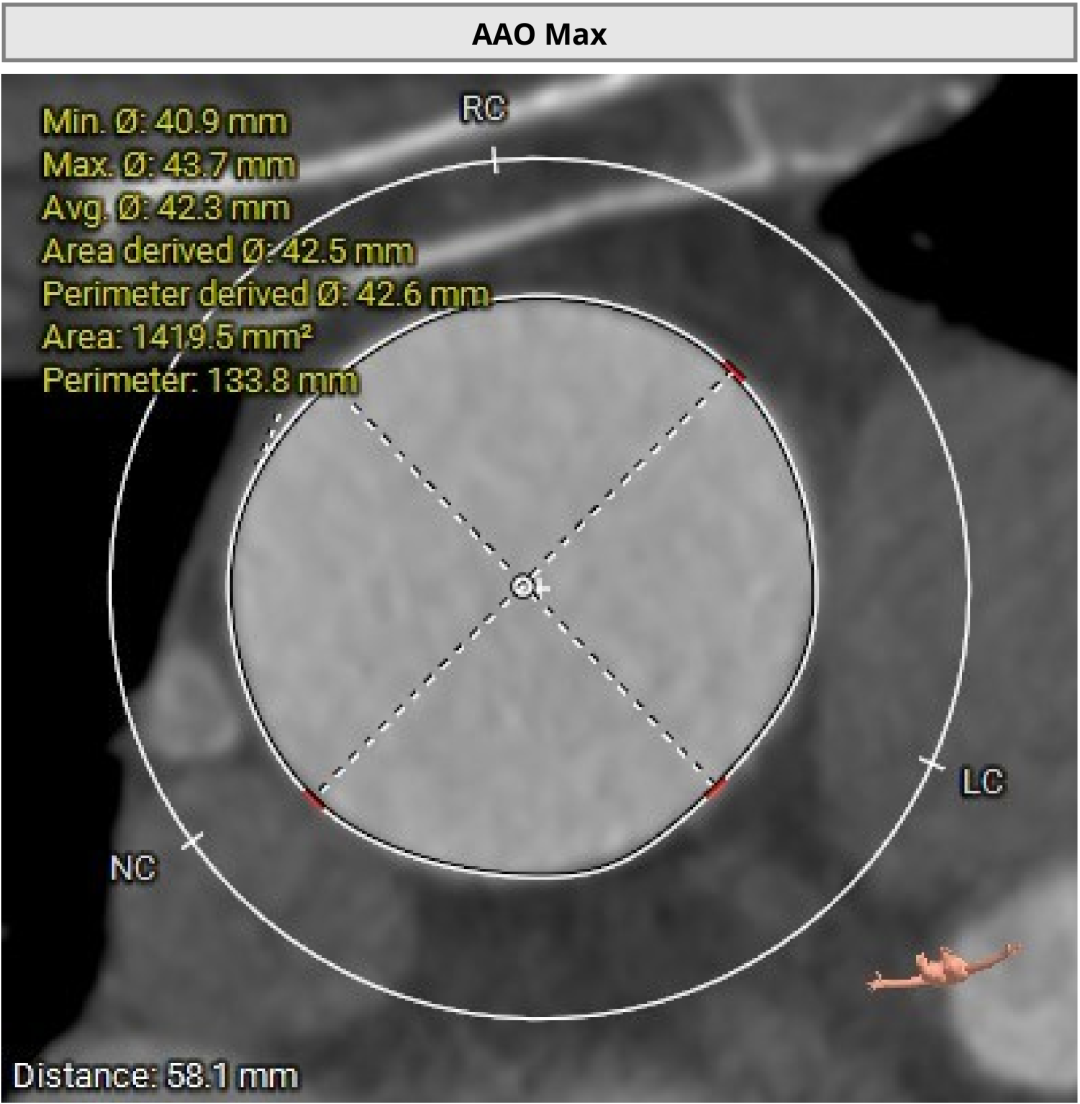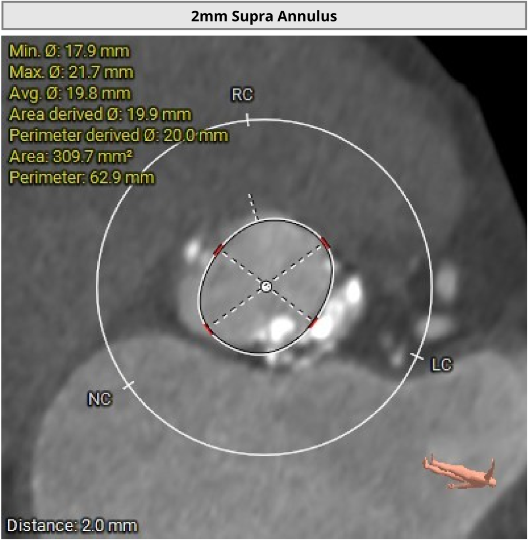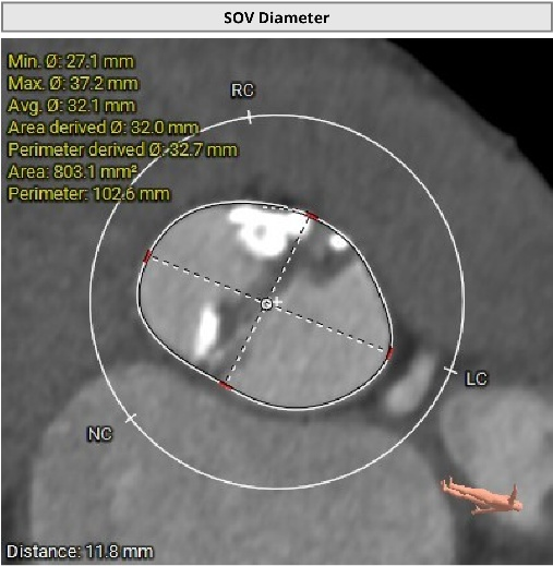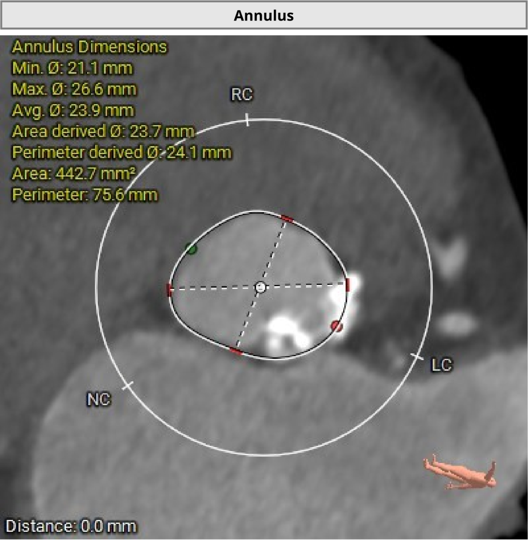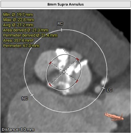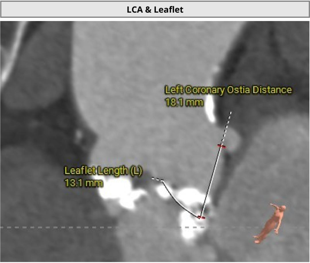 术前CT评估显示,患者瓣膜解剖条件总体具备经导管治疗基础,双侧冠脉阻塞风险偏低。